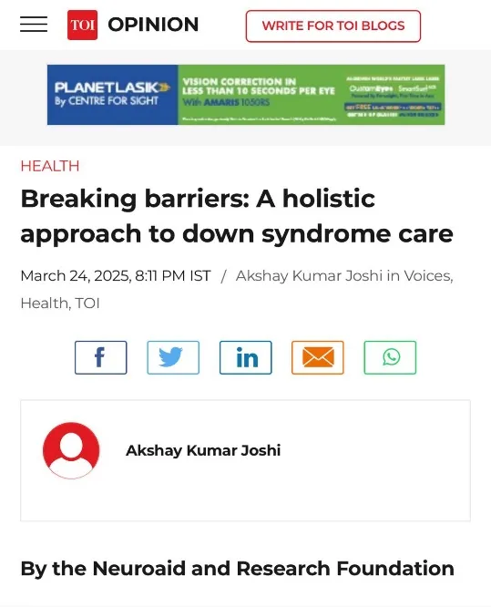 An article emphasizing the importance of a multidisciplinary team approach was put together by the professional team of NRF and for the first time found its’ way on the Times of India Blog where it was posted.